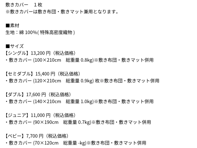 ※敷きカバーは敷き布団・敷きマット兼用となります。