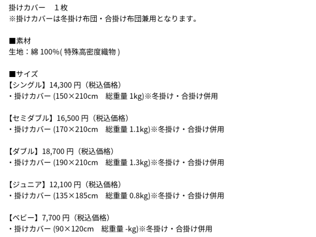 ・掛けカバー(90×120cm 総重量-kg)※冬掛け・合掛け併用